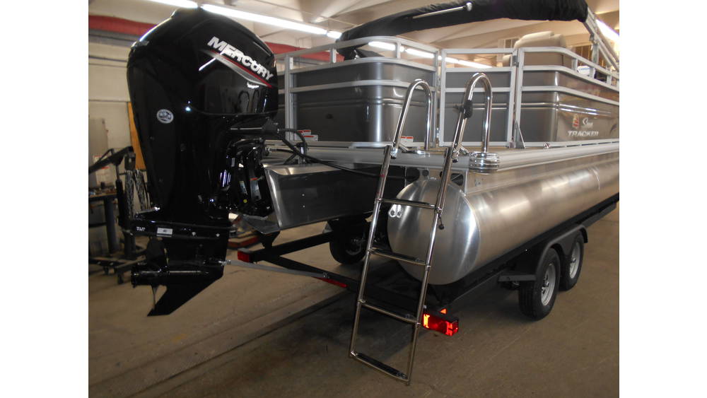 THIS IS A NEW SUN TRACKER FISHIN BARGE 22 DLX. EQUIPPED WITH A 115 HP MERCURY 4 STROKE. ALSO INCLUDED LOWRANCE HOOK REVEAL X FISH FINDER AND A MINN KOTA POWERDRIVE 70 LB THRUST TROLLING MOTOR. AND A SNAPLESS COVER.