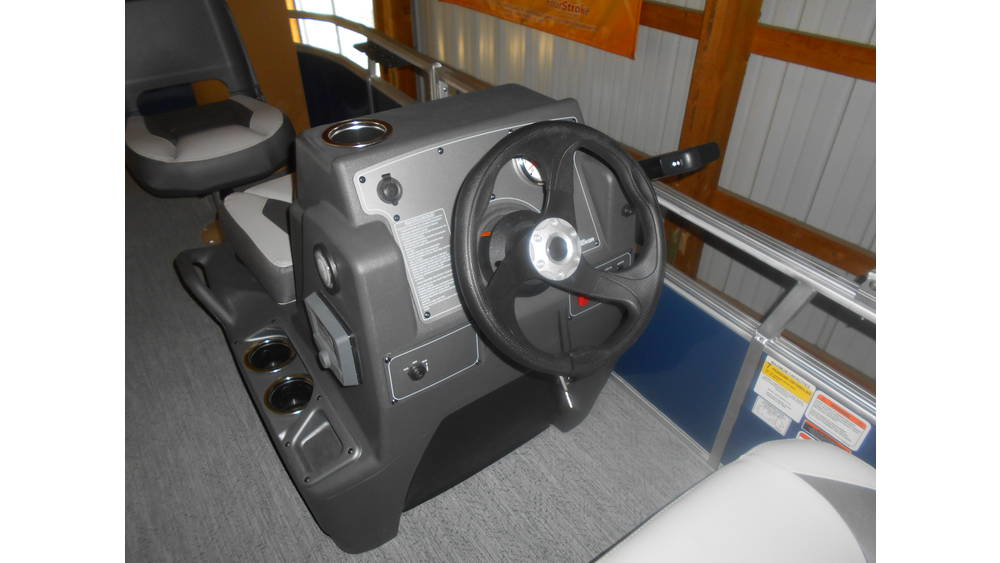 - Driver console w/vertical rod holder, integrated storage, drink holders & side-mounted controls