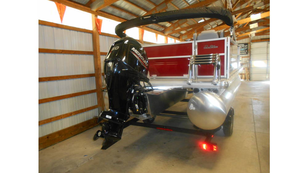 2016 SUN TRACKER 16' PARTY BARGE WITH MERCURY 50 HP 4 STROKE ENGINE AND TRACKER CUSTOM BUNK TRAILER. FUN FAMILY PONTOON FOR A CRUISE AROUND THE LAKE.